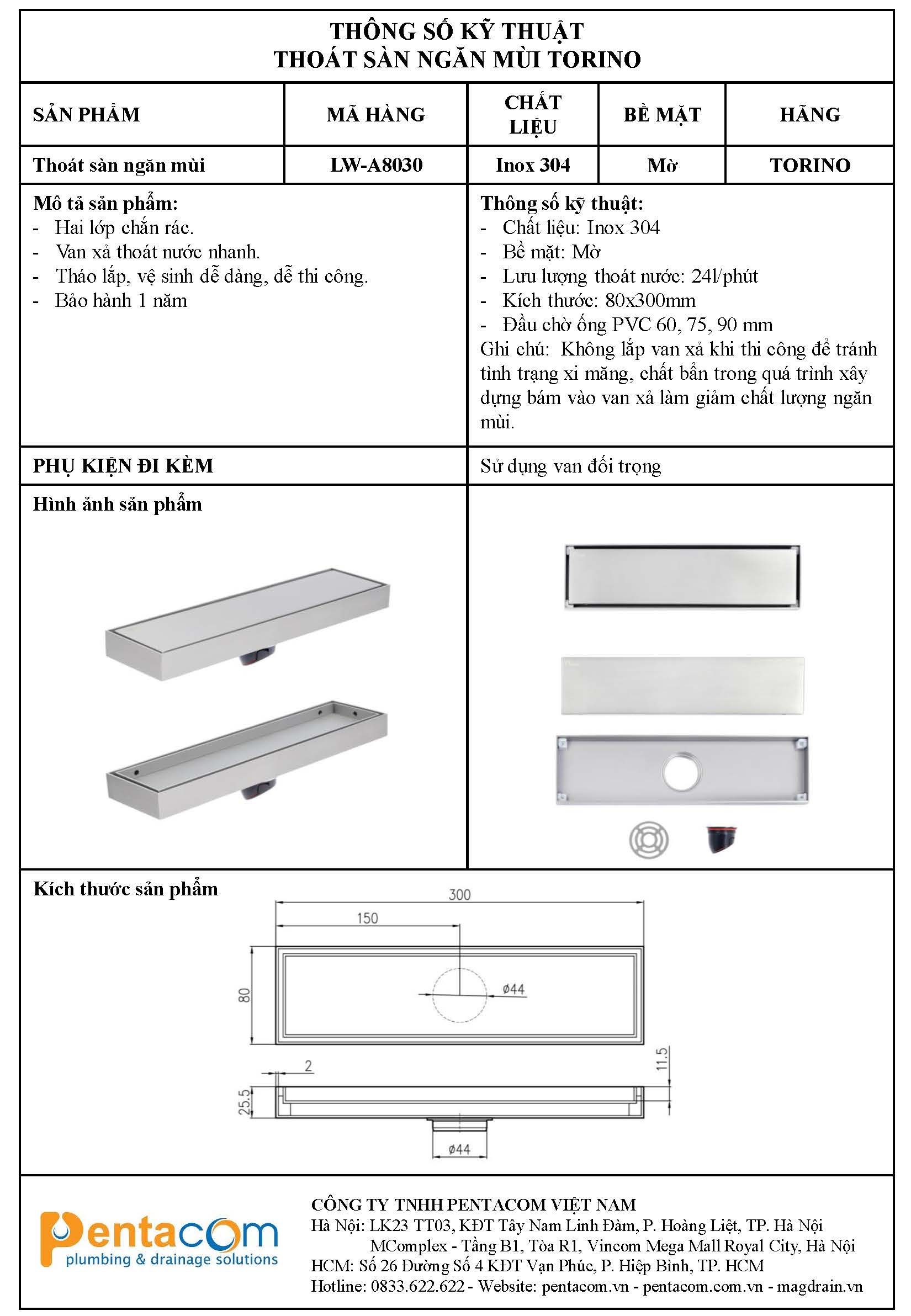 Thoát sàn máng dài LW-A8030 TORINO