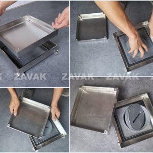 TÍNH NĂNG – LỢI ÍCH ● Chất liệu Bền vững – 100% inox 304 chống gỉ, an toàn trong môi trường nước, thân thiện với môi trường. ● Bề mặt inox sáng bóng, dễ dàng lau chùi vệ sinh ● Lát gạch/sàn gỗ phẳng theo sàn nhà, đẹp về mặt thẩm mỹ. Nẹp inox mỏng, những chi tiết của nắp chỉ nhìn thấy tối thiểu, hài hòa với không gian nội thất. ● Nắp đậy kín, giữ sạch nguồn nước ăn không bị ô nhiễm và chống mùi hôi thoát ra cho hố ga ● Chống bị vỡ gạch khi bị chèn nặng bên trên. ● Tay nâng thuận tiện. Dễ dàng đóng mở nắp kiểm tra bể thường xuyên ● Các kích thước chuẩn theo kích thước gạch vuông từ 25x25cm đến 100x100cm. Có thể đặt sản xuất theo kích thước riêng của khách hàng. ● Lắp đặt đơn giản, dễ dàng thay thế nắp bể bê tông cũ hoặc lắp đặt cho bể mới