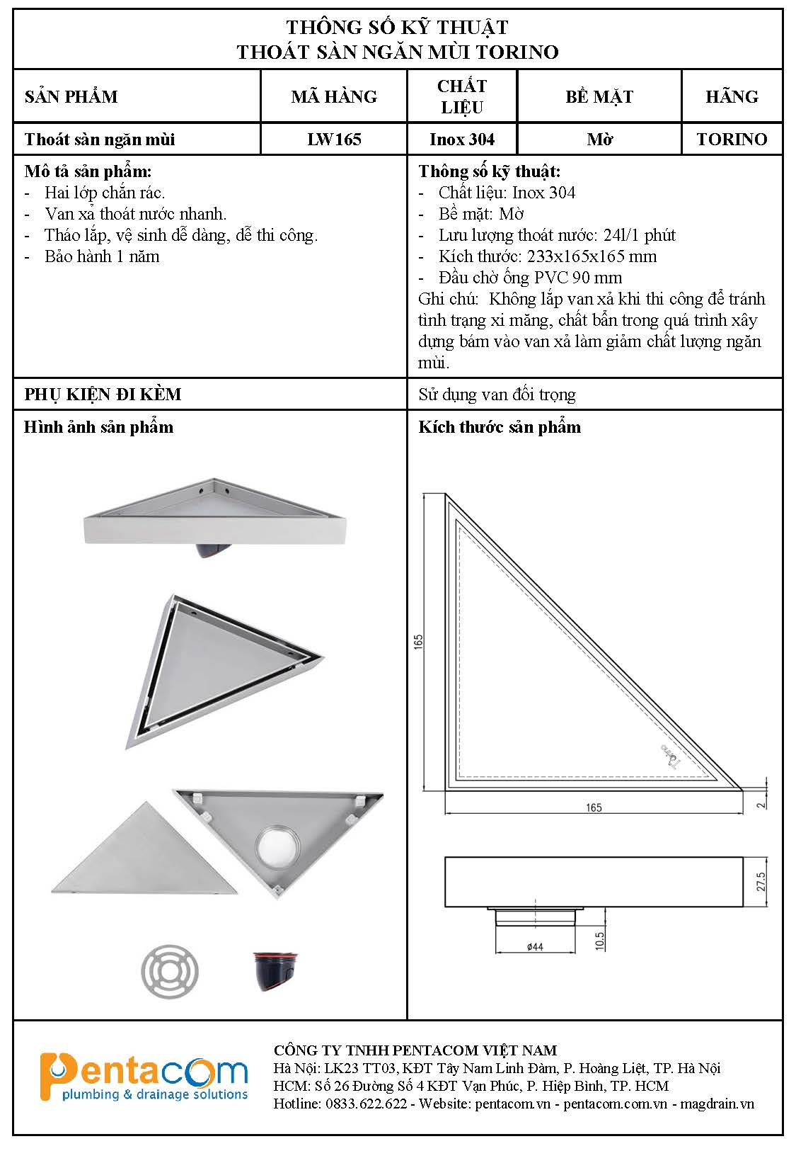 Thoát sàn góc LW165 TORINO