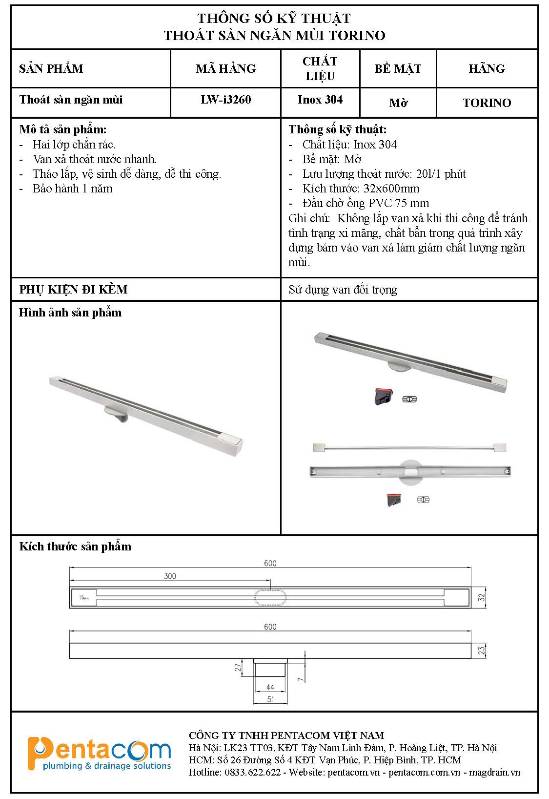 – Kích thước: 32*600