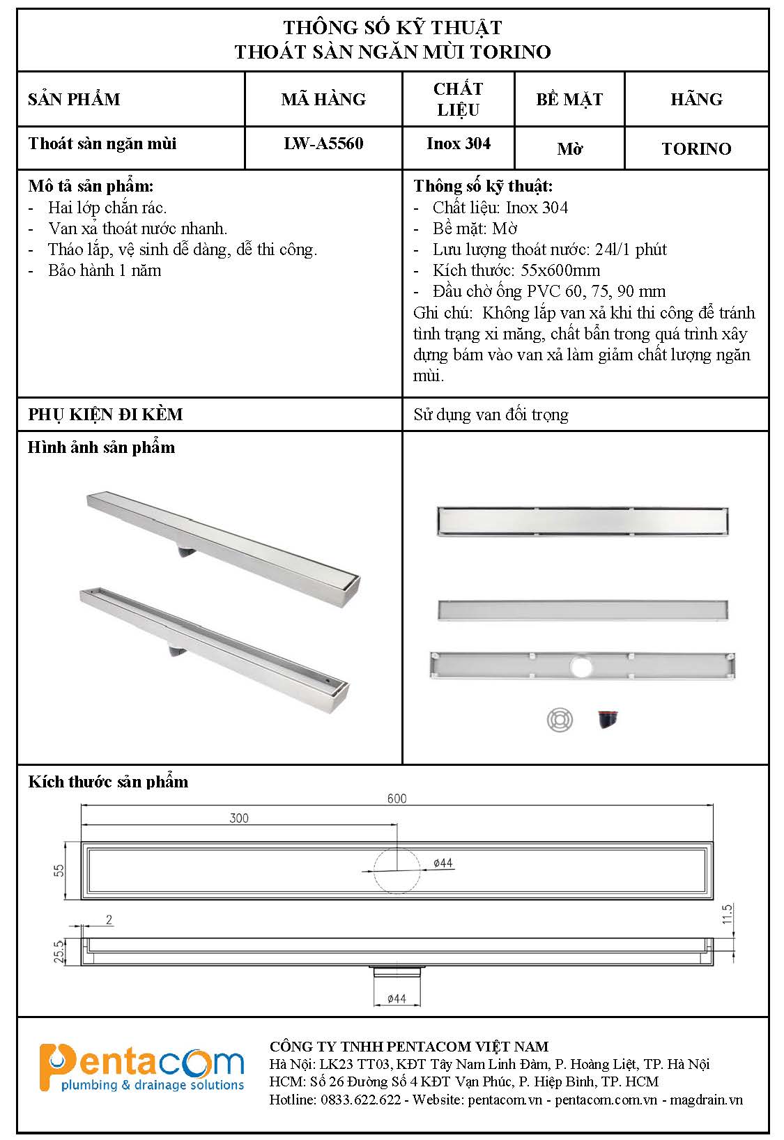– Kích thước: 55*600